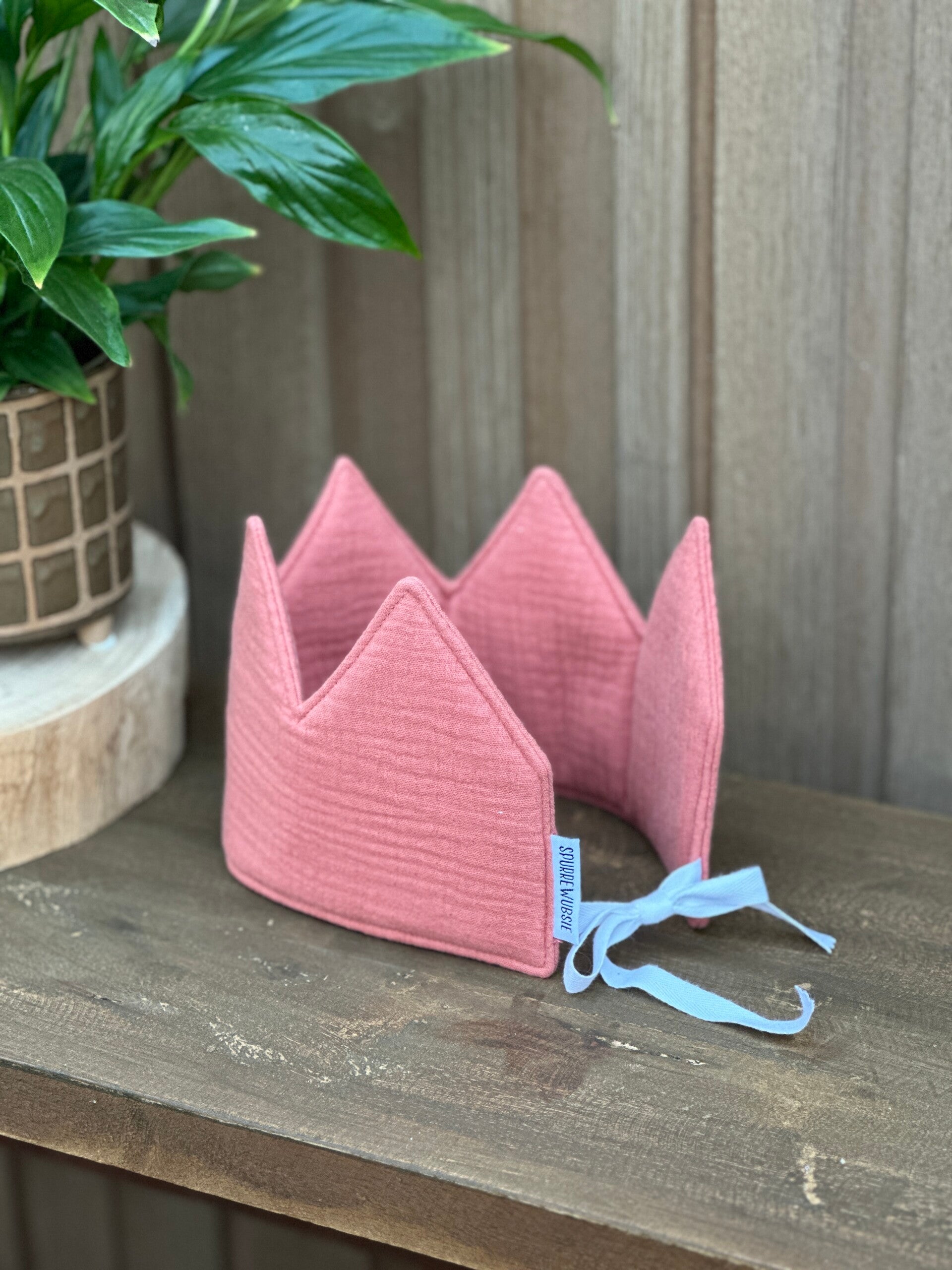 Kroontje in zachte afwerking, volledig op maat te maken met de lintjes achteraan.
