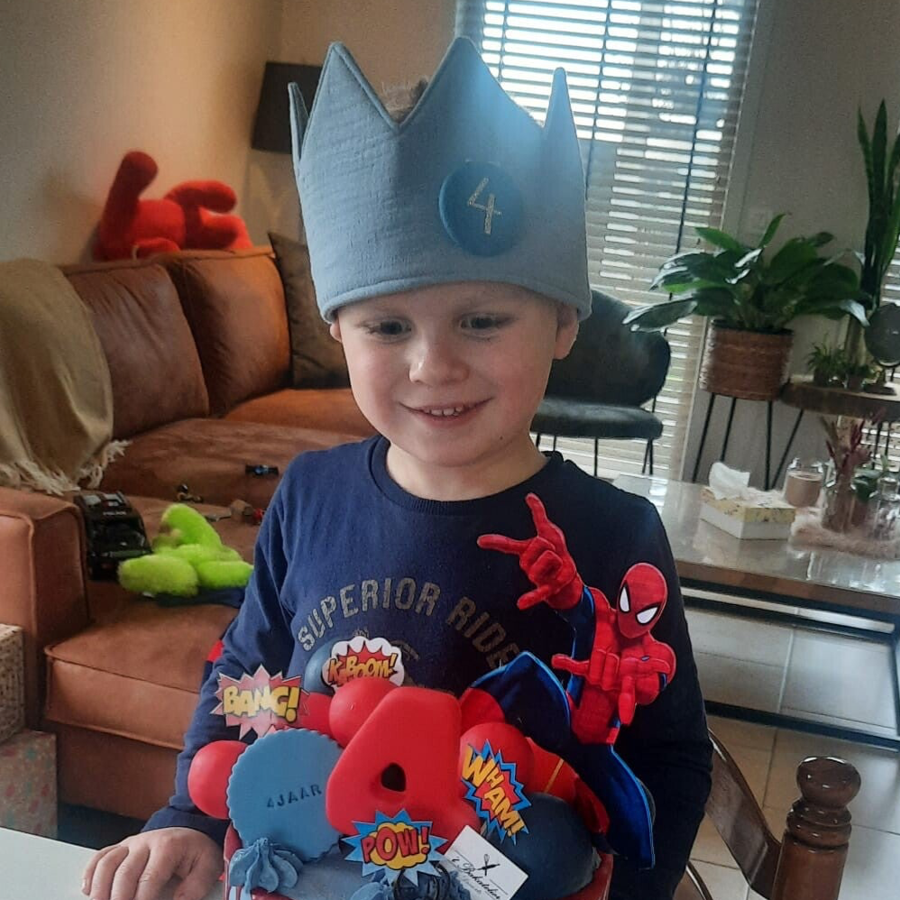 Kroontje in zachte afwerking, volledig op maat te maken met de lintjes achteraan.