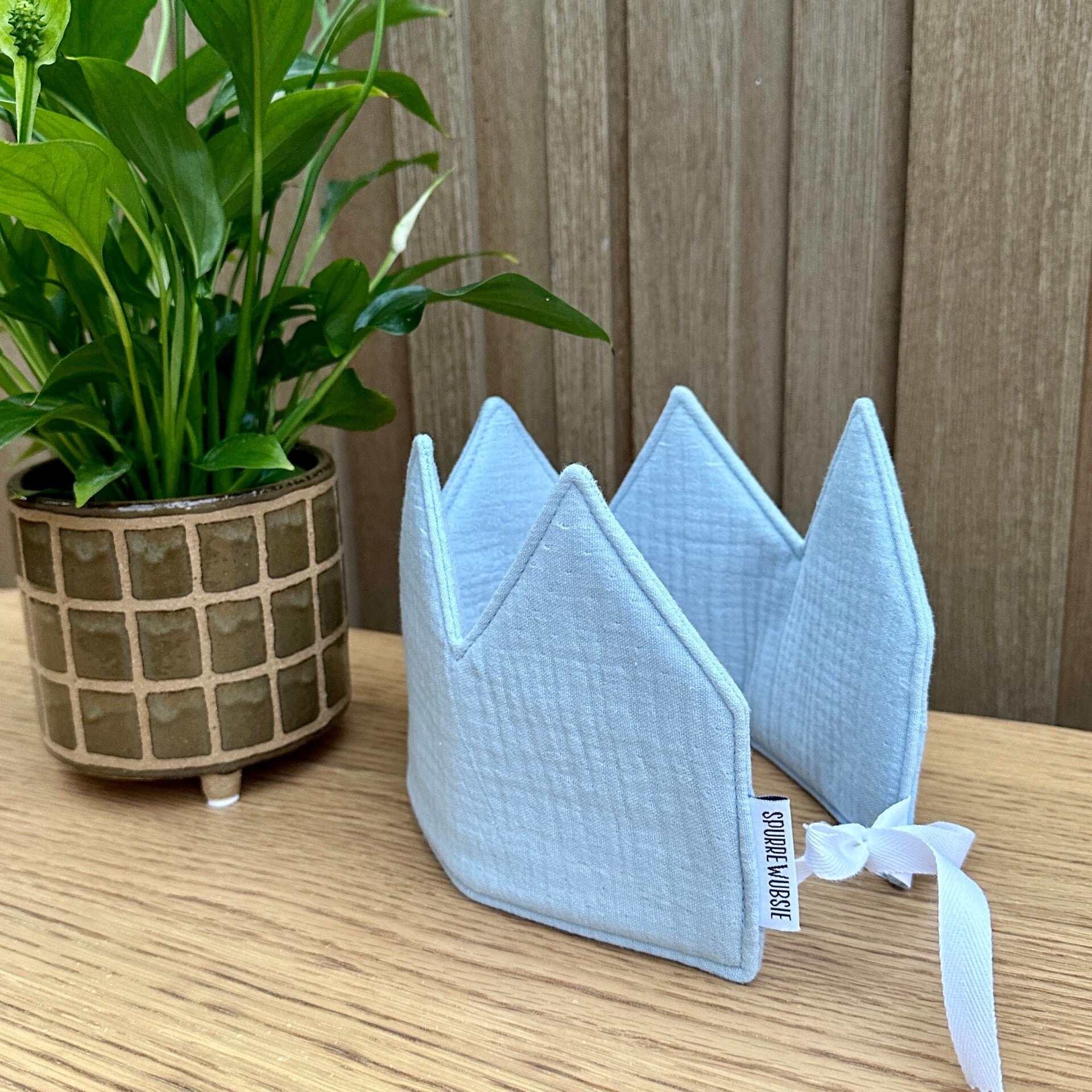 Kroontje in zachte afwerking, volledig op maat te maken met de lintjes achteraan.