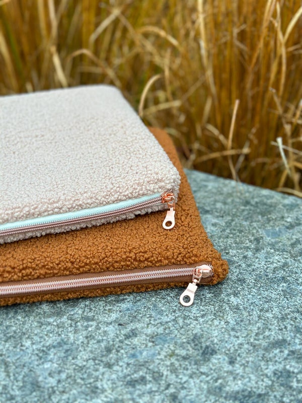 Deze laptophoezen in zachte teddy en boucle zijn niet alleen stijlvol maar ook heerlijk knus om vast te houden. Met zorg handgemaakt en afgewerkt tot in de kleinste details, zijn deze tasjes een ideale mix van praktisch en charmant.