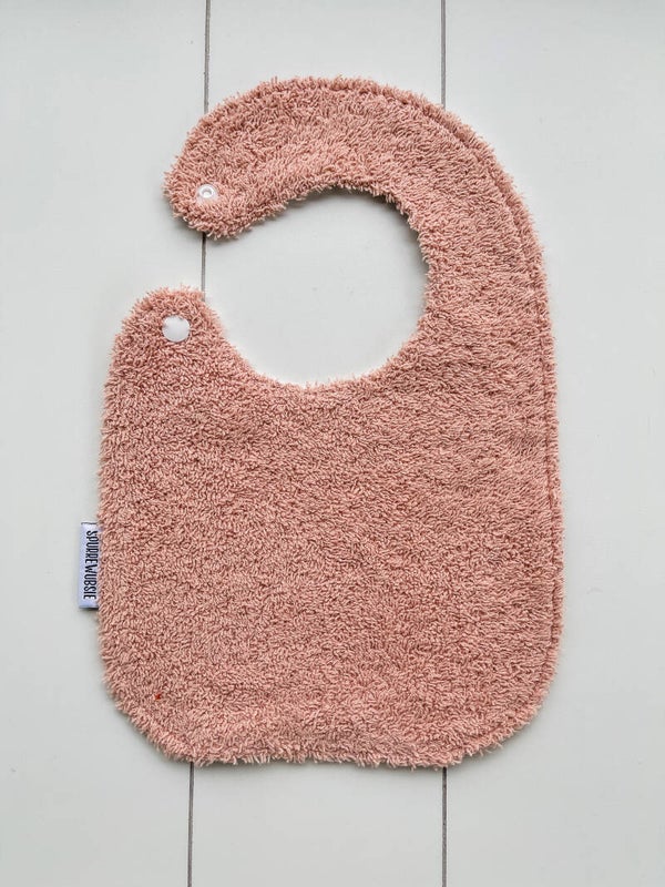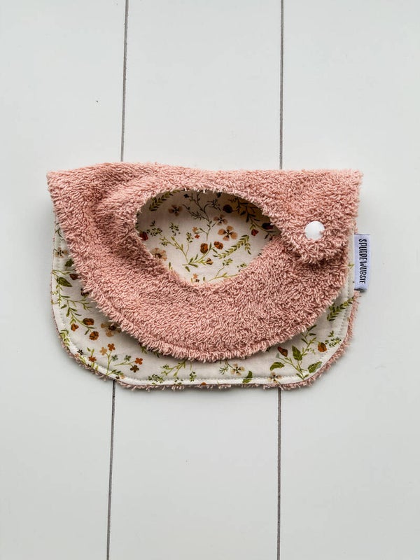 Slabbetje uit katoen, met badstof of wafelstof als achterkant. Het slabbetje kan langs beide kanten gedragen worden.