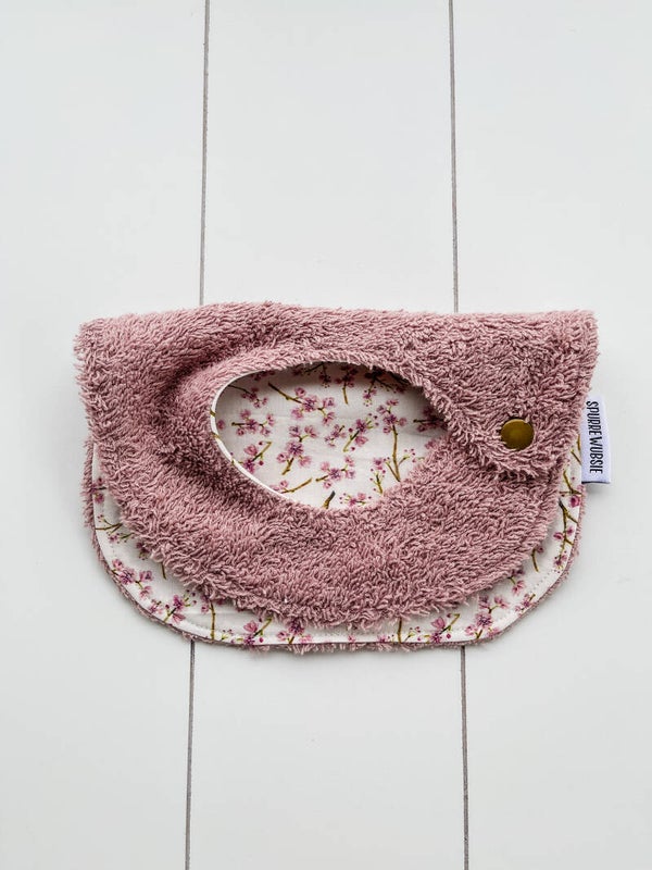 Slabbetje uit katoen, met badstof of wafelstof als achterkant. Het slabbetje kan langs beide kanten gedragen worden.