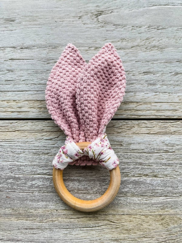 Een glad houten bijtring, veilig voor een baby
