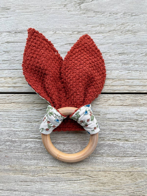 Een glad houten bijtring, veilig voor een baby