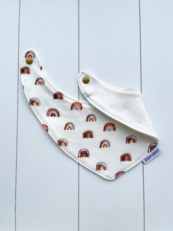 Zeversjaaltje in tricot en lichte sweaterstof of wafelstof aan de binnenkant.Het sjaaltje kan langs beide kanten gedragen worden. Een elegante oplossing voor een slabbetje,ideaal voor kwijlende baby's.