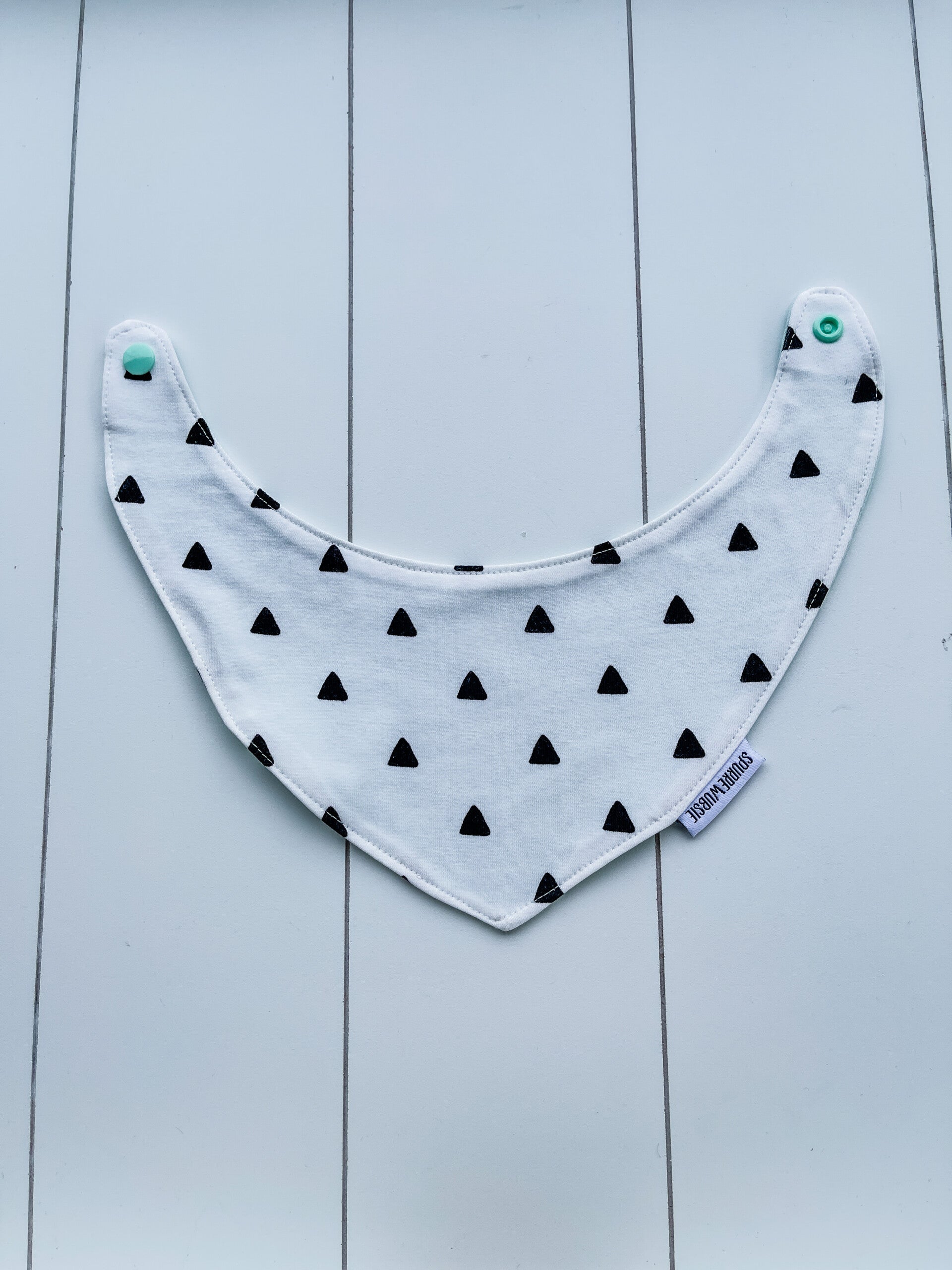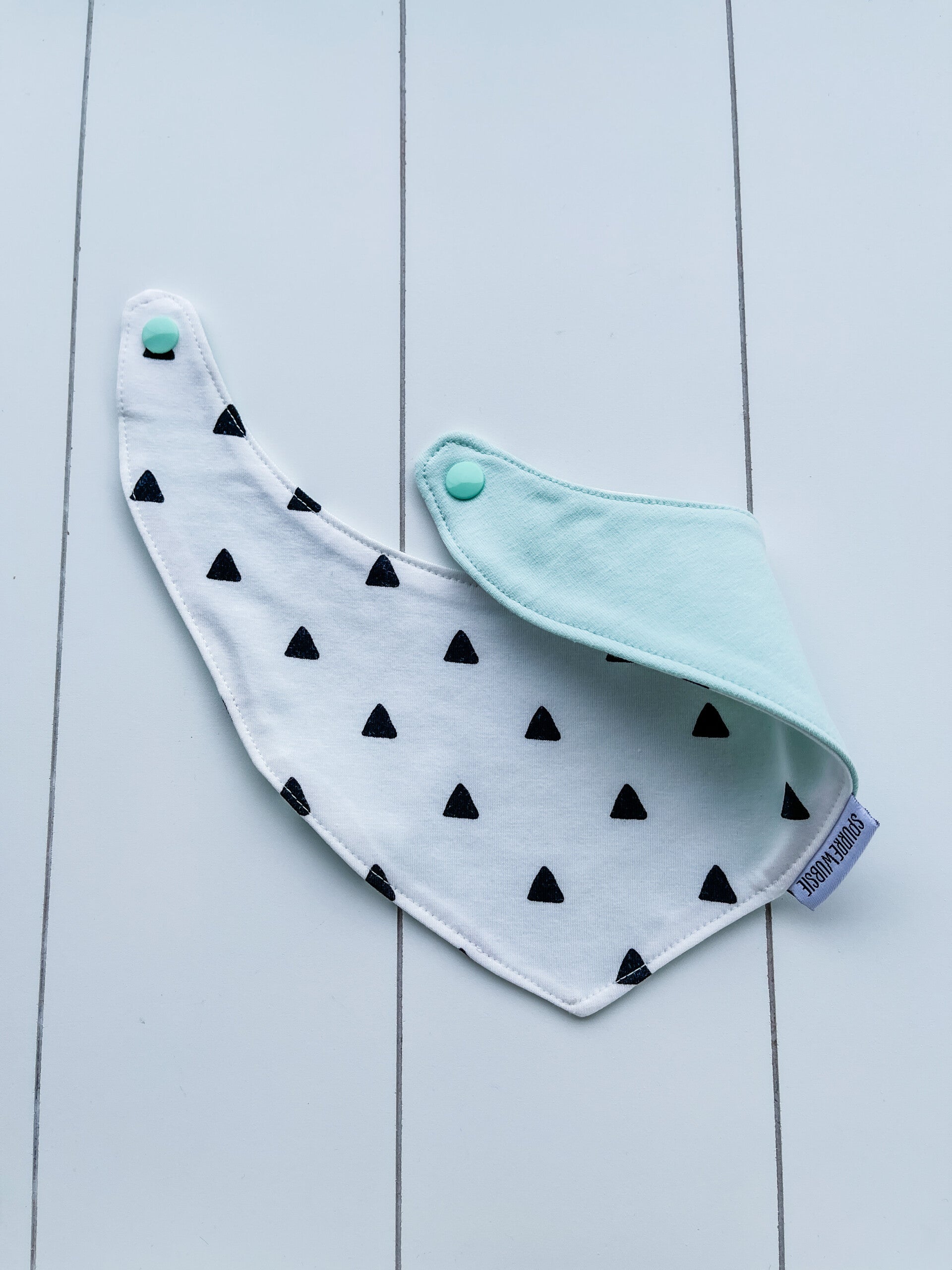 Zeversjaaltje in tricot en lichte sweaterstof of wafelstof aan de binnenkant.Het sjaaltje kan langs beide kanten gedragen worden. Een elegante oplossing voor een slabbetje,ideaal voor kwijlende baby's.