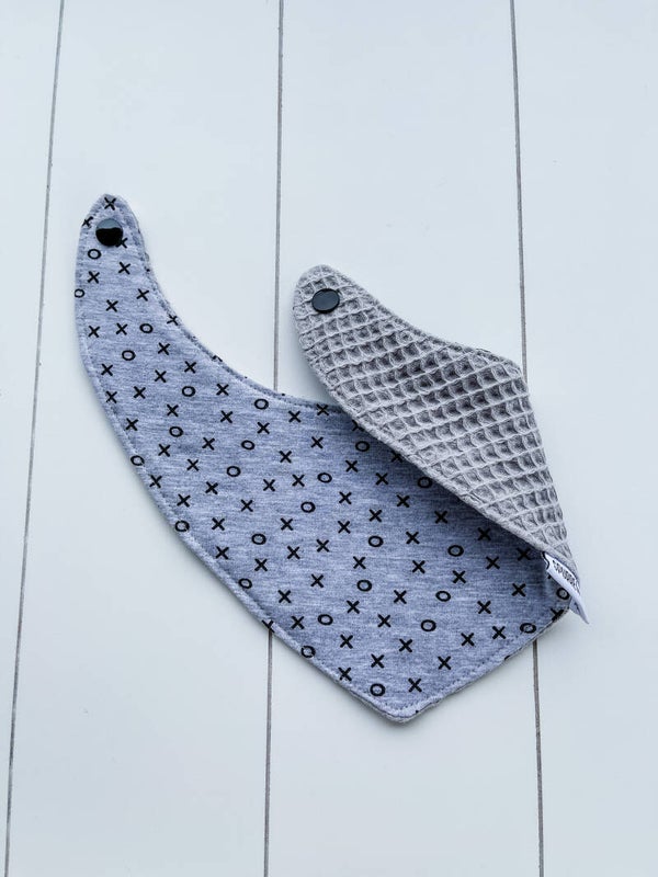 Zeversjaaltje in tricot en lichte sweaterstof of wafelstof aan de binnenkant.Het sjaaltje kan langs beide kanten gedragen worden. Een elegante oplossing voor een slabbetje,ideaal voor kwijlende baby's.