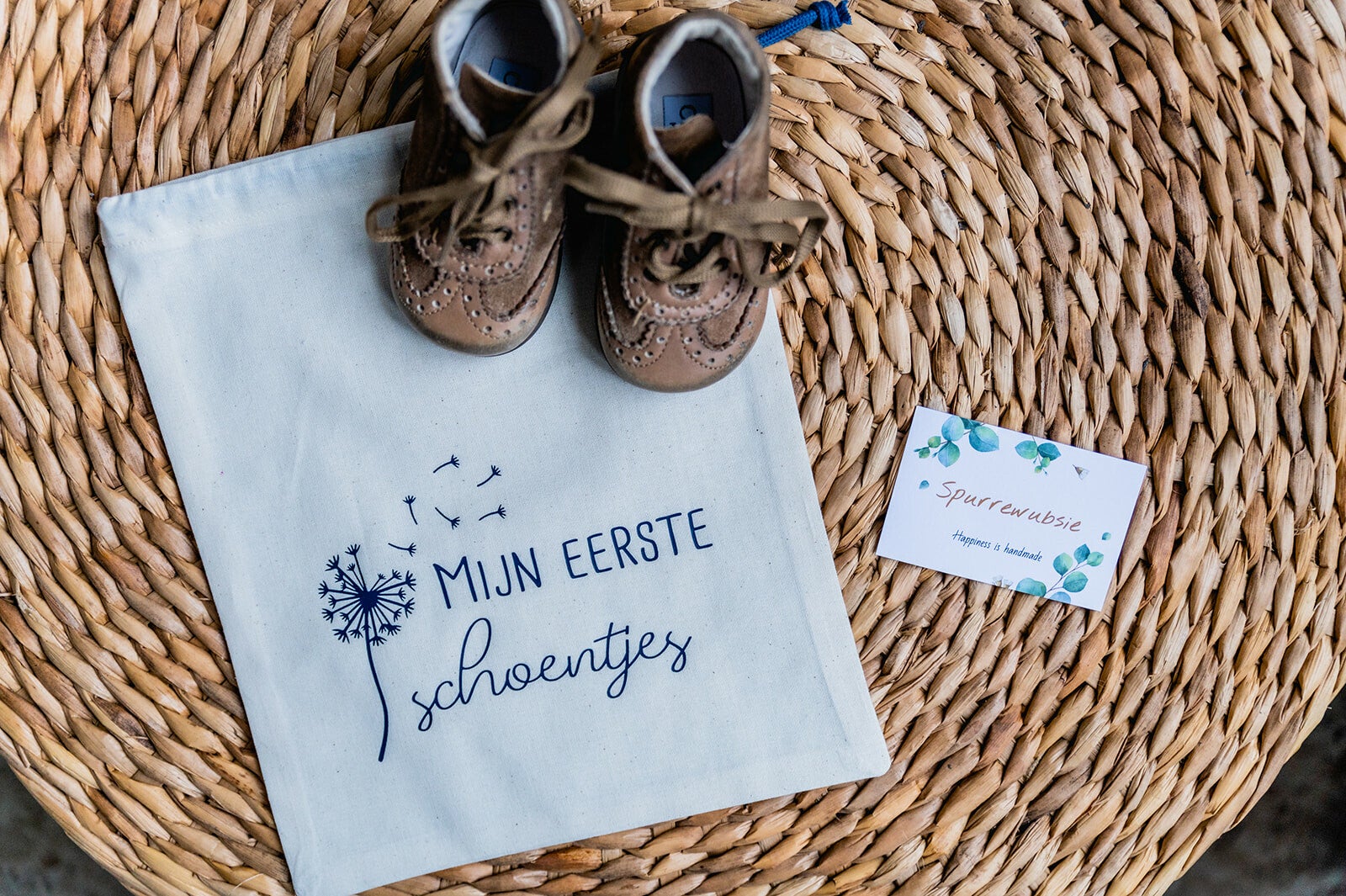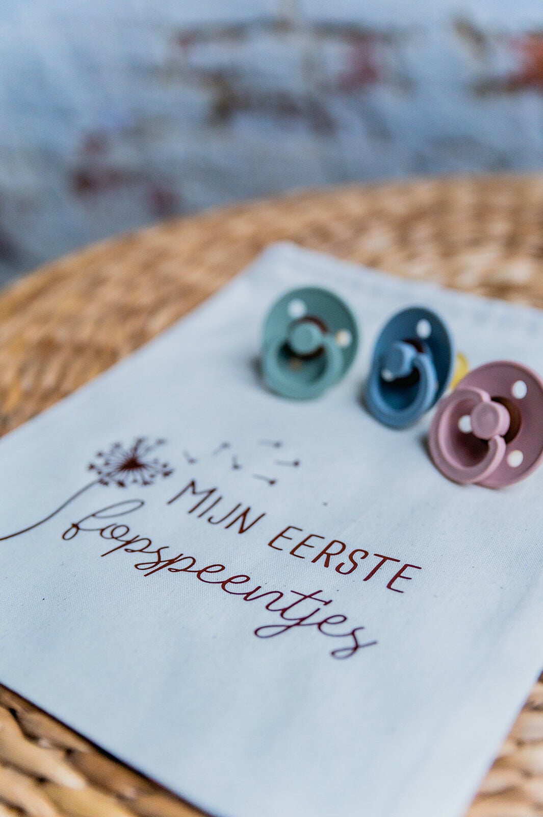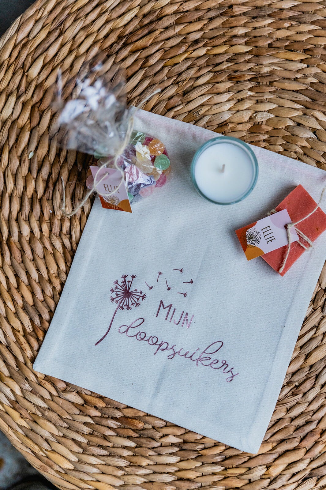 Volledige set van zakjes in naturel kleur met sluiting met een bijpassende koord om allerhande zwangerschaps- en geboorteherinneringen in te bewaren. Verkrijgbaar in 4 kleuren bedrukking.