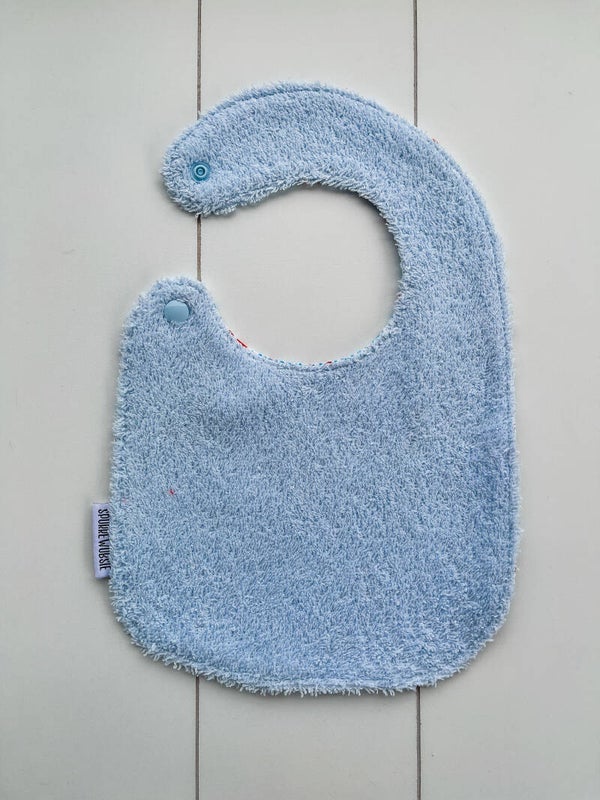 Slabbetje uit katoen, met badstof of wafelstof als achterkant. Het slabbetje kan langs beide kanten gedragen worden.