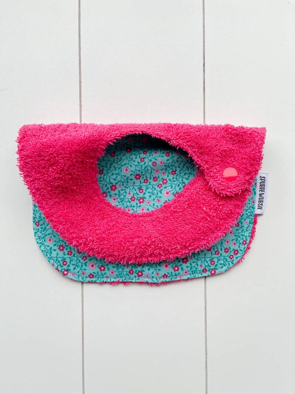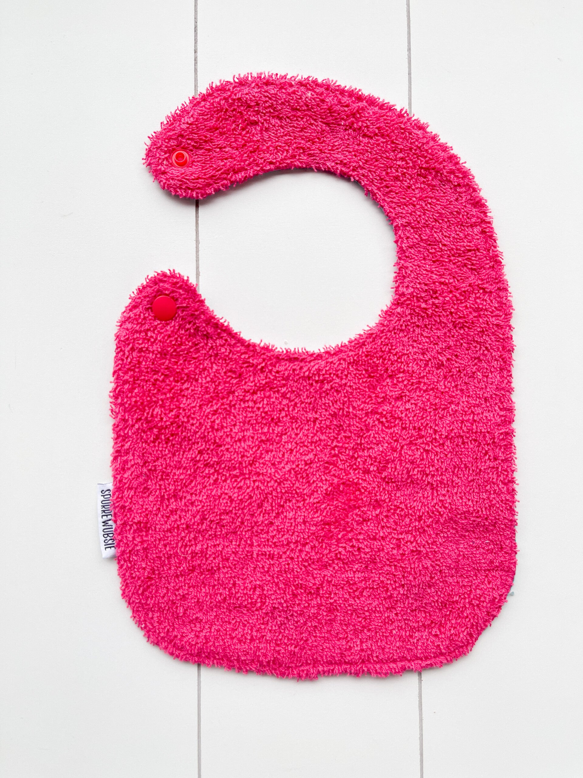 Slabbetje uit katoen, met badstof of wafelstof als achterkant.