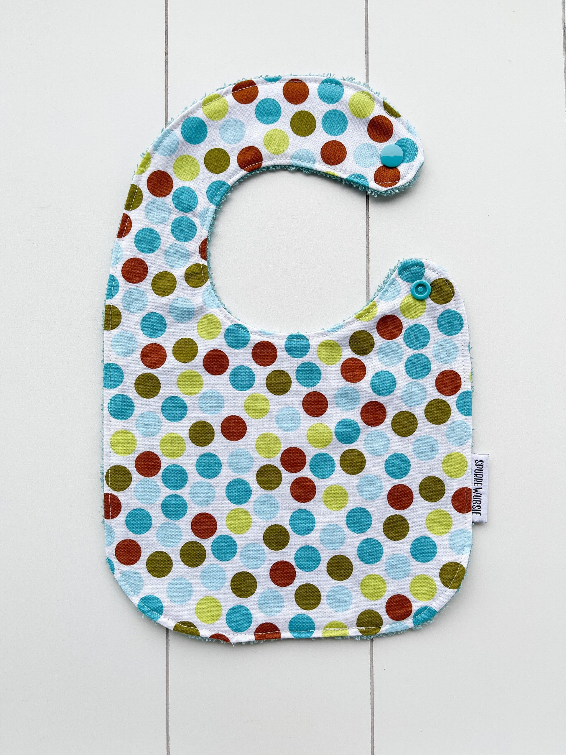 Slabbetje uit katoen, met badstof of wafelstof als achterkant.