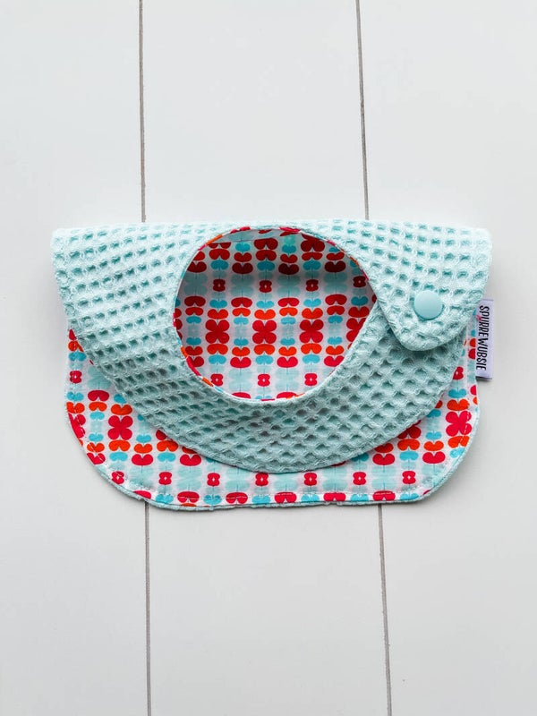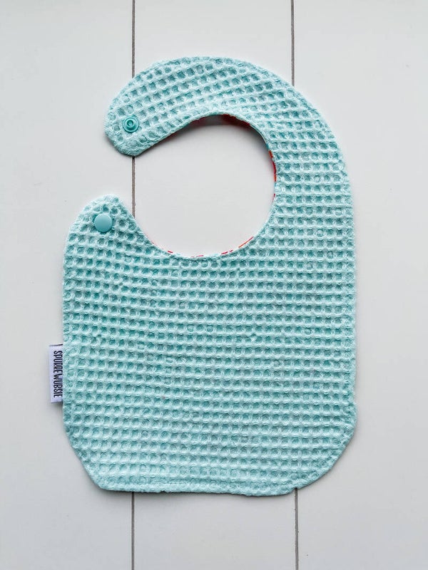 Slabbetje uit katoen, met badstof of wafelstof als achterkant.