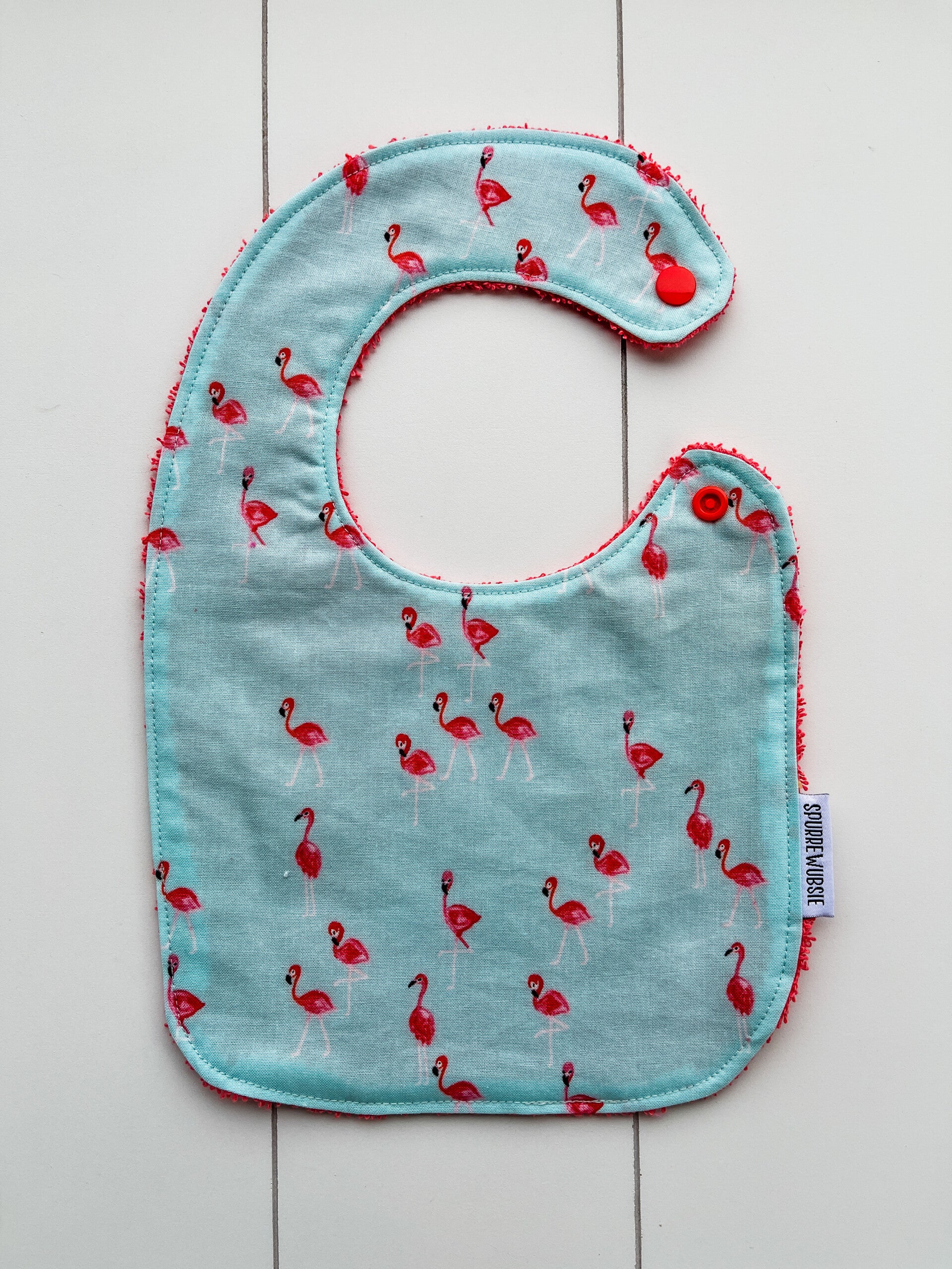 Slabbetje uit katoen, met badstof of wafelstof als achterkant. Het slabbetje kan langs beide kanten gedragen worden.