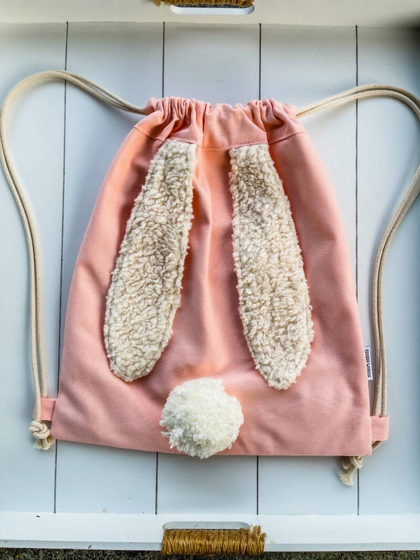 Rugzakje met fluffy konijnenoortjes en schattig poepke.