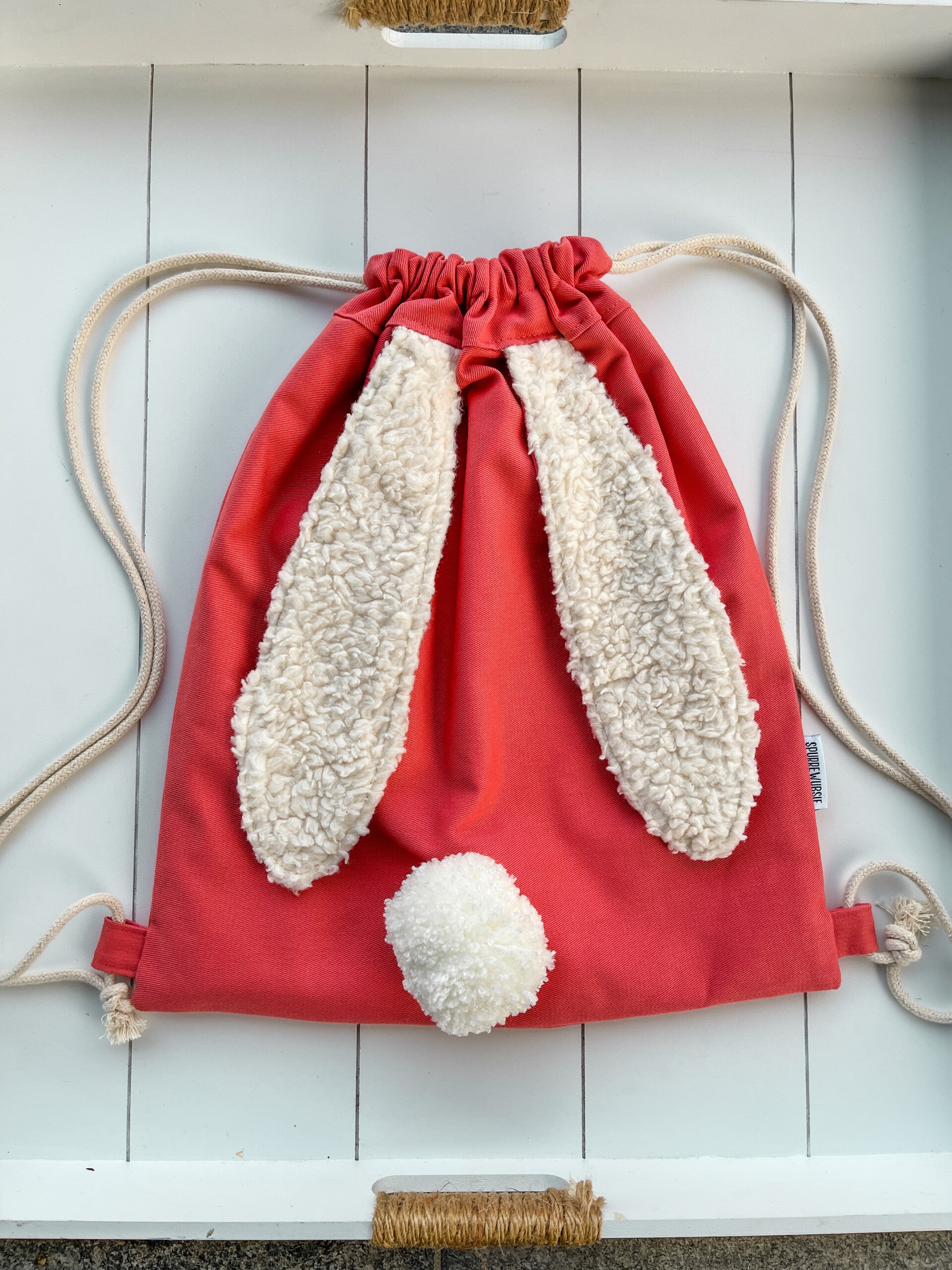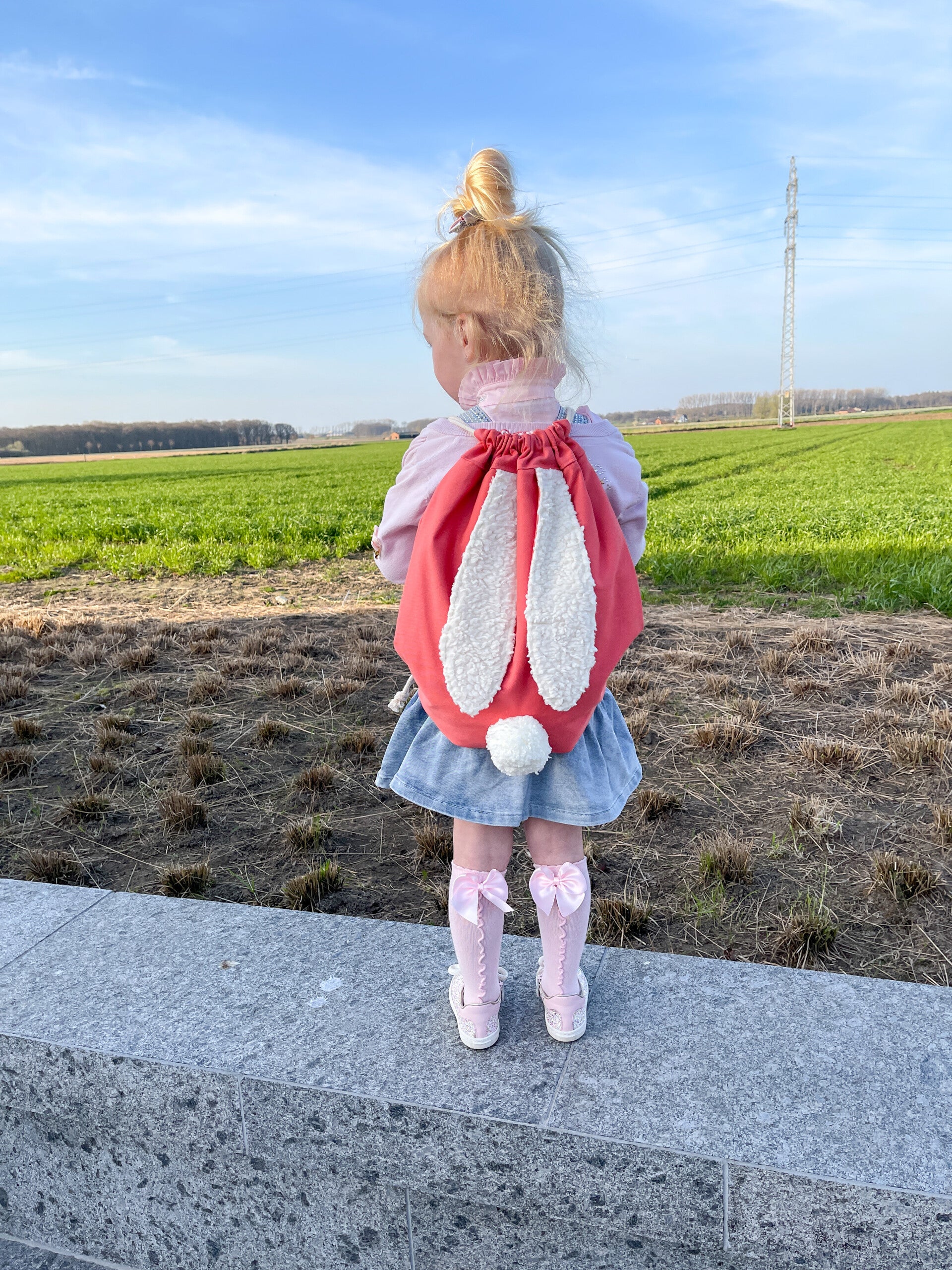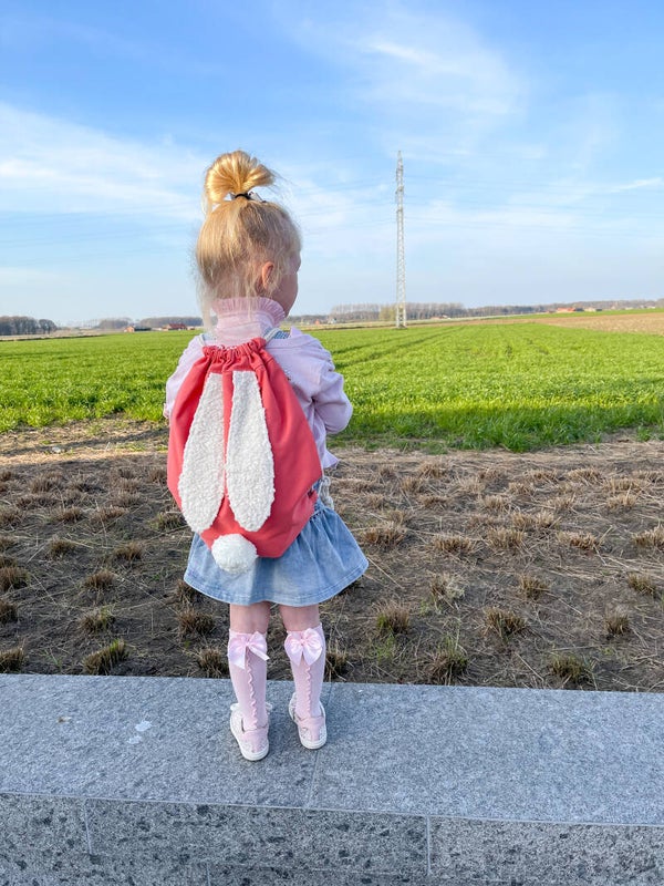 Rugzakje met fluffy konijnenoortjes en schattig poepke.
