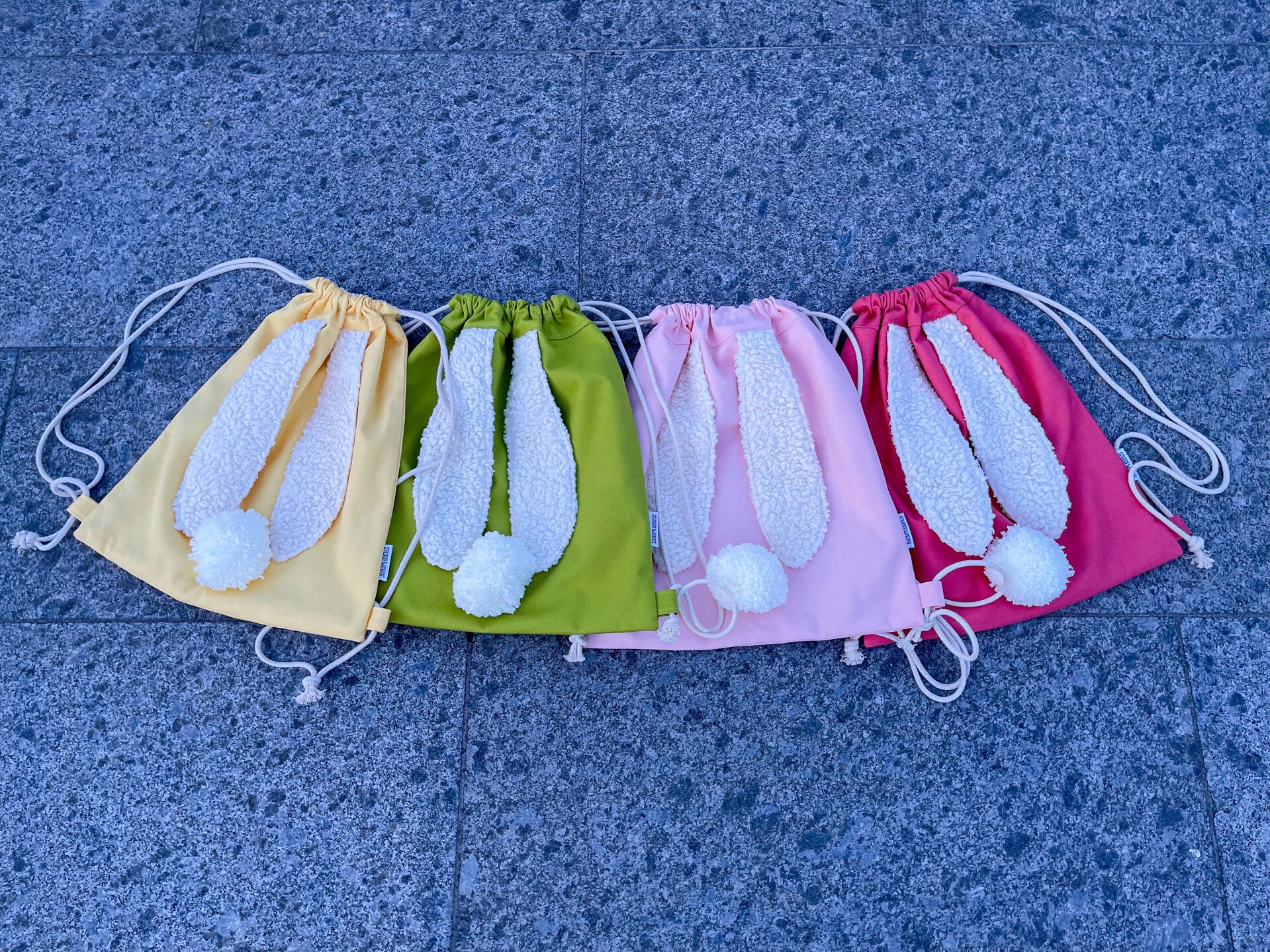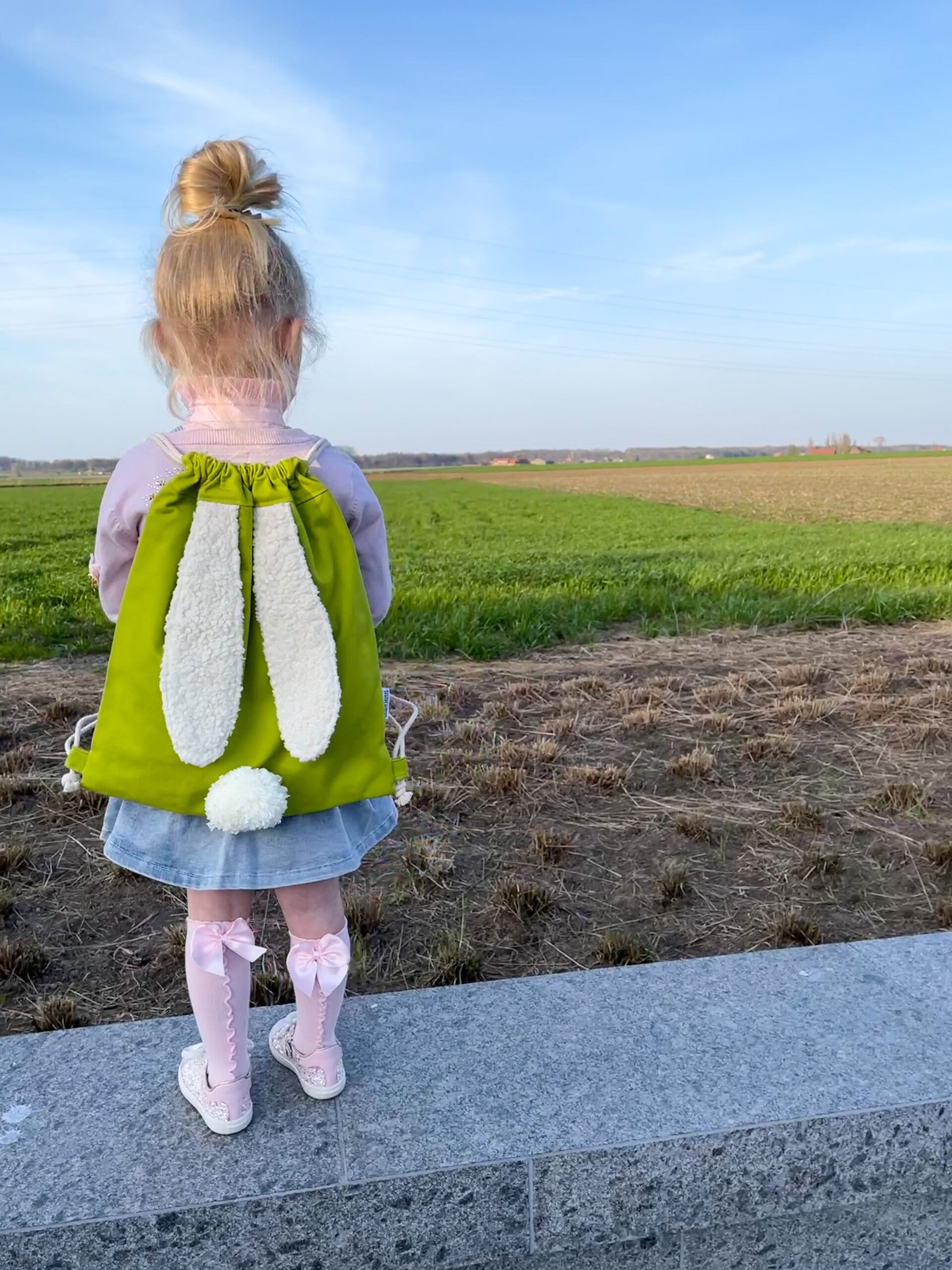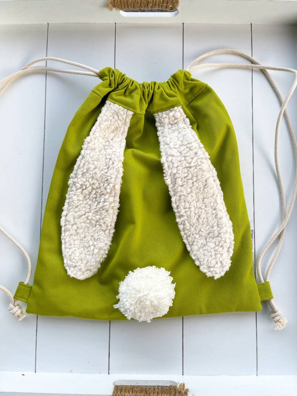 Rugzakje met fluffy konijnenoortjes en schattig poepke.