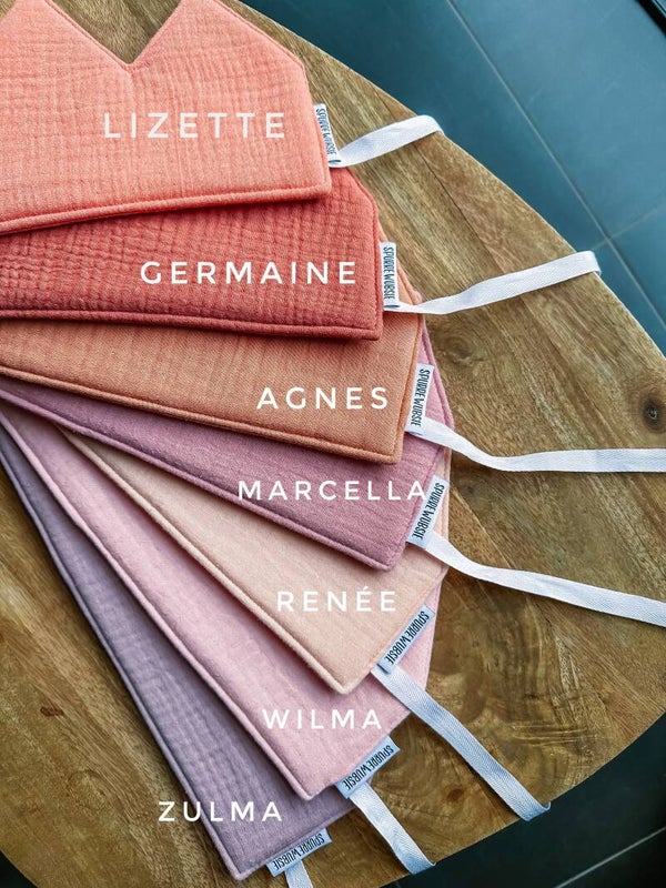 Kroontje in zachte afwerking, volledig op maat te maken met de lintjes achteraan.