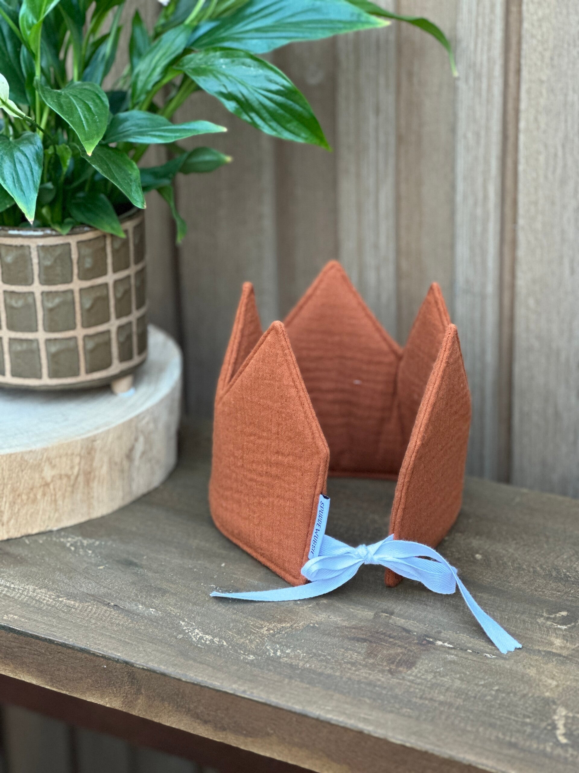 Kroontje in zachte afwerking, volledig op maat te maken met de lintjes achteraan.