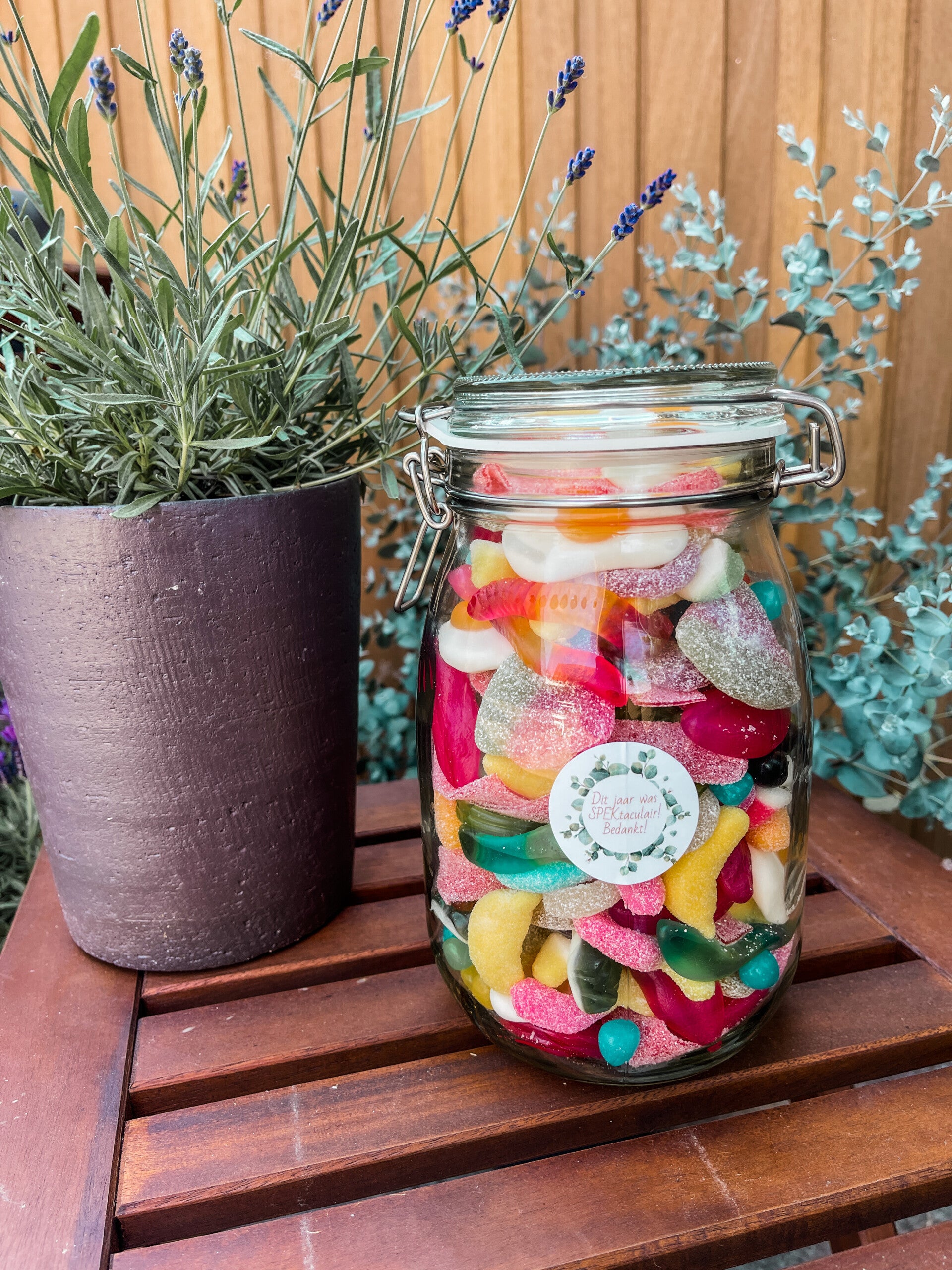 Gewicht snoep ong 1.3 kgInhoud voorraadpot 1,8 L