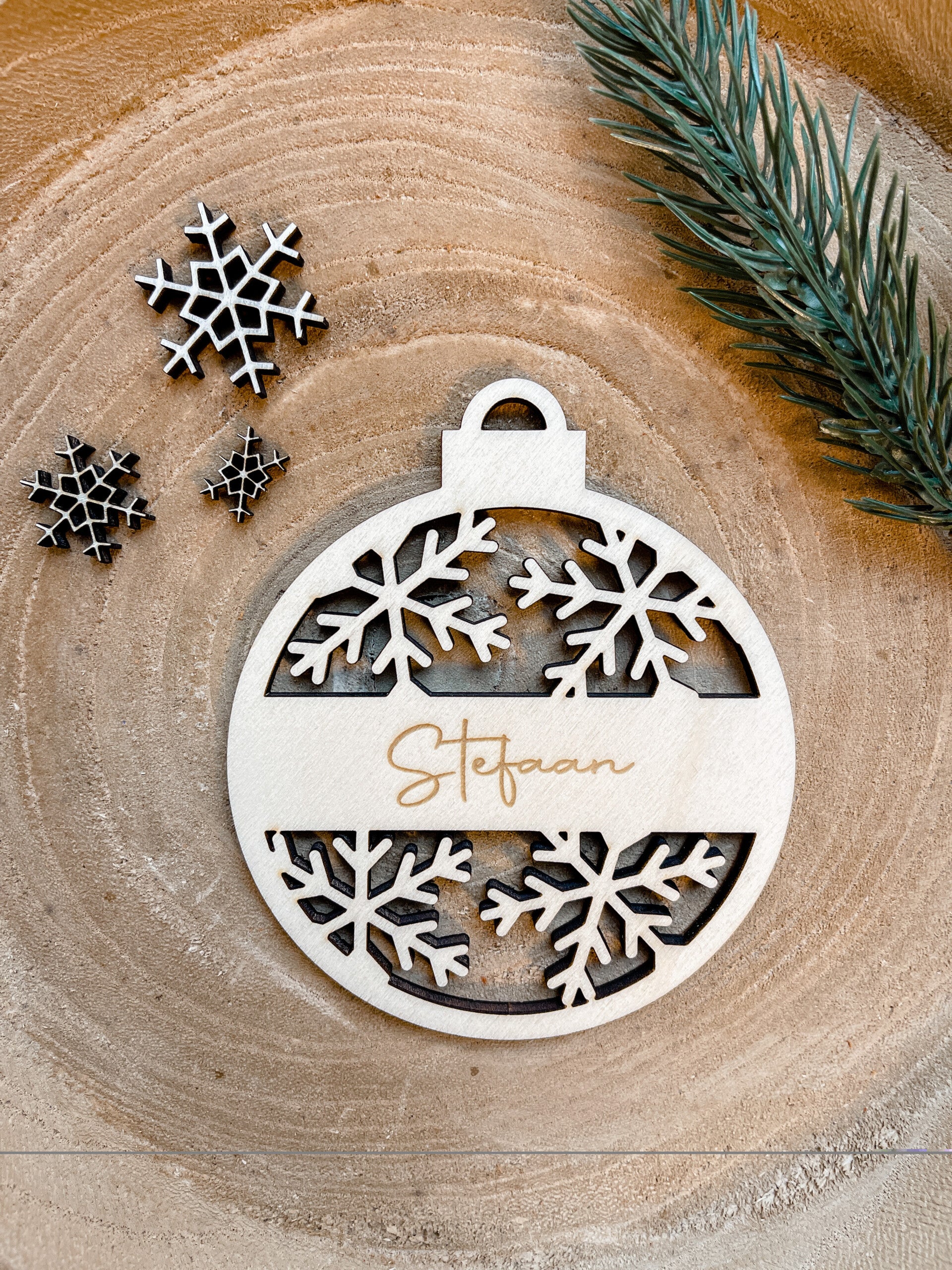 Laat je kerstboom fonkelen met een gepersonaliseerde houten kerstbal! Leuk voor de eigen boom maar ook heel origineel als cadeau.