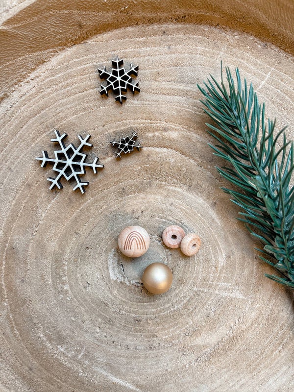 2. Parel: geen parel, houten parel met regenboog, 2 houten platte schijfjes of goudkleurig siliconen parel.