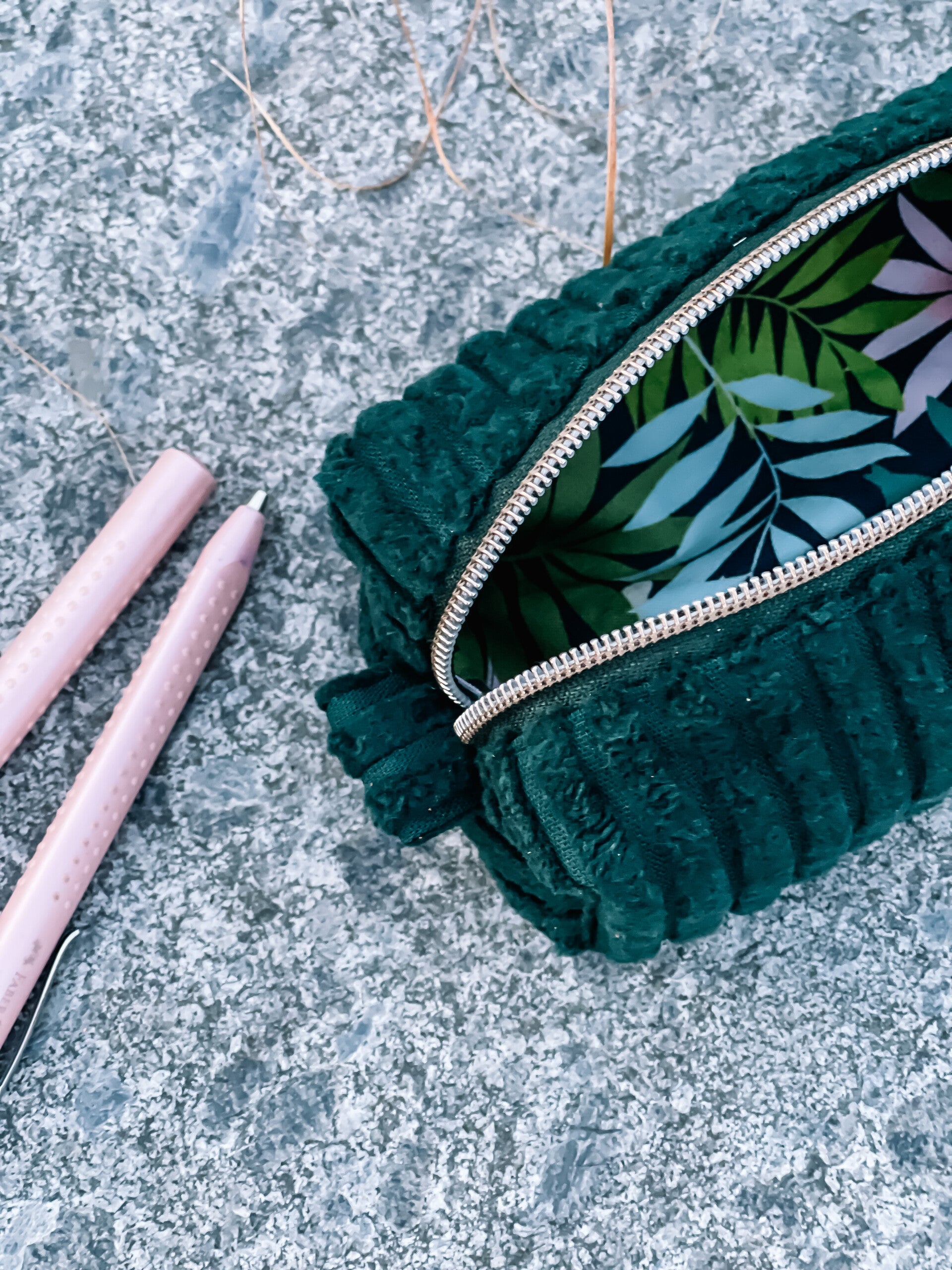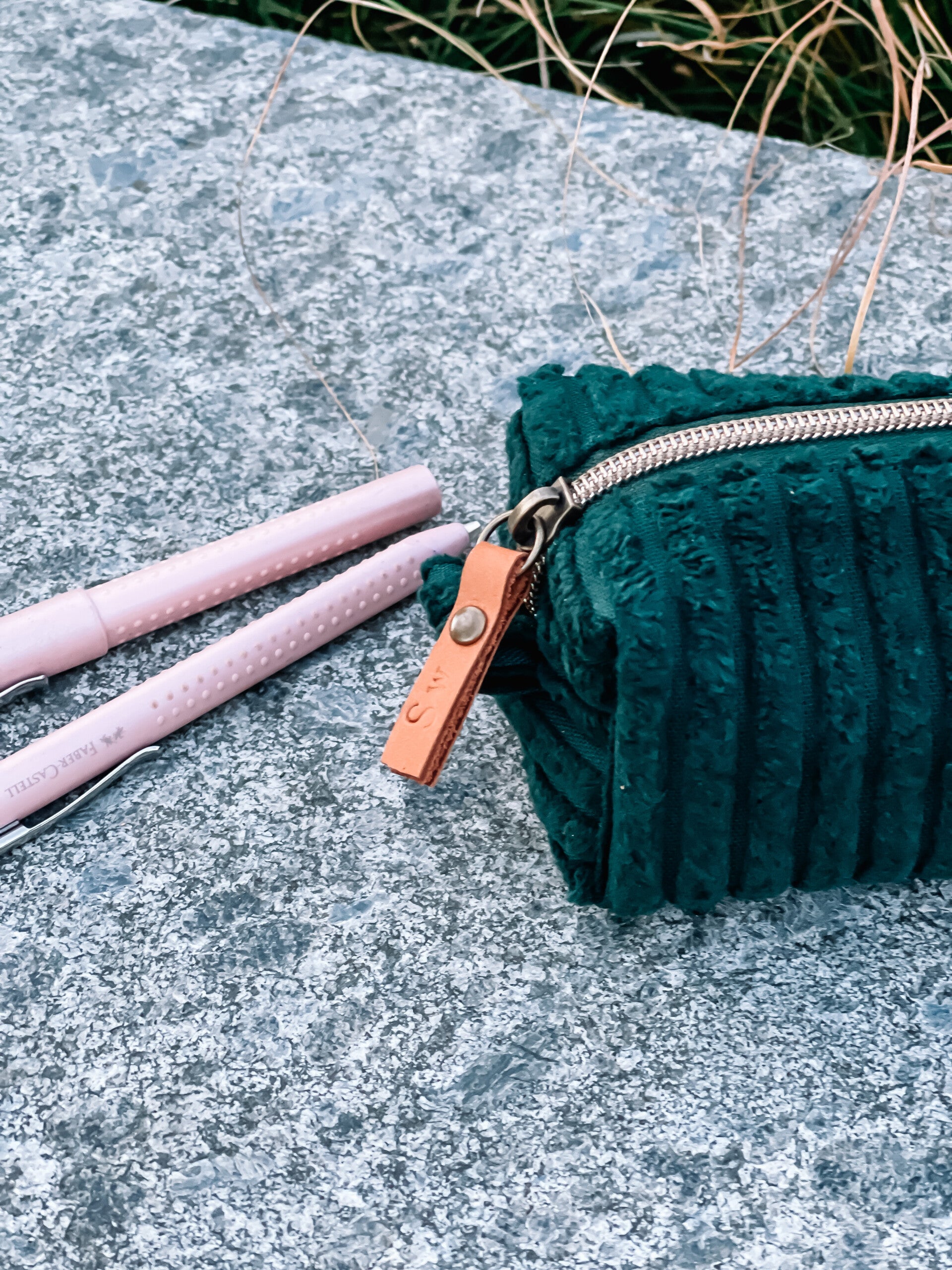 Pennenzak in ribfluweel - Petrol blauw
